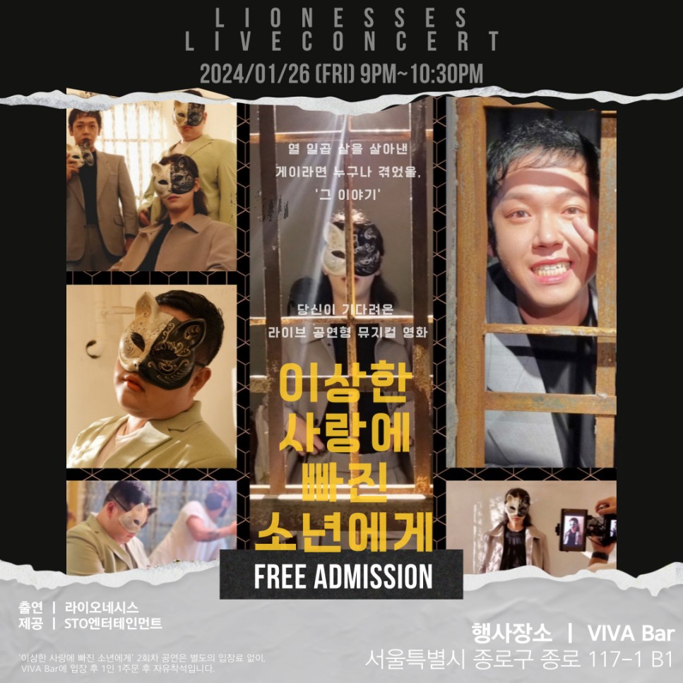 [종로 VIVA] 1월 26일 금 밤9시 라이오네시스 공연 안내